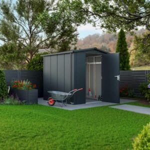 Vrtnu kućicu Juno krasi elegantan dizajn, funkcionalnost i izdržljivost – savršen dodatak vašem vrtu za skladištenje alata, opuštanje ili kreativne projekte. Uživajte u spoju estetike i praktičnosti!